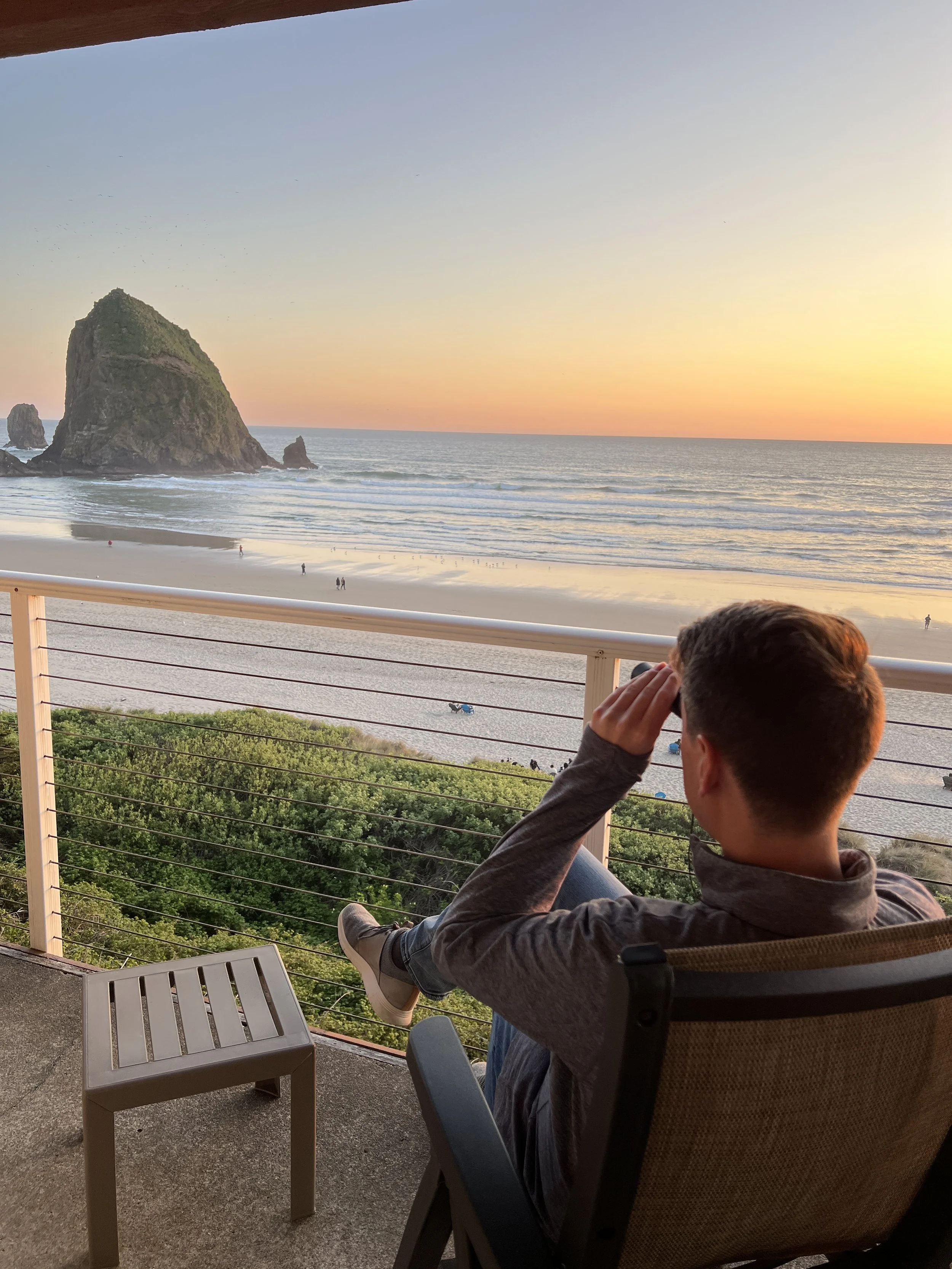 Once we checked in at the fabulous Hallmark Resort on Cannon Beach, we took some time to relax after a long day of travel. The room was absolutely gorgeous, and spotless. For being on the beach, there was no sand to be found in our room. The resort is also dog-friendly - which made me miss Mindy so much. The hotel was the highlight of our stay - I highly recommend the oceanside view rooms, it’s worth every penny. Our room also had a small kitchenette, which was great for making a quick snack, chilling our beers, or heating up our breakfast sandwiches. I recommended to pack ice packs and ziplocks in case you are hiking - two items we wish we had, in order to pack a cold lunch on the go. We improvised with the hotel ice bucket and the ice bags. :)